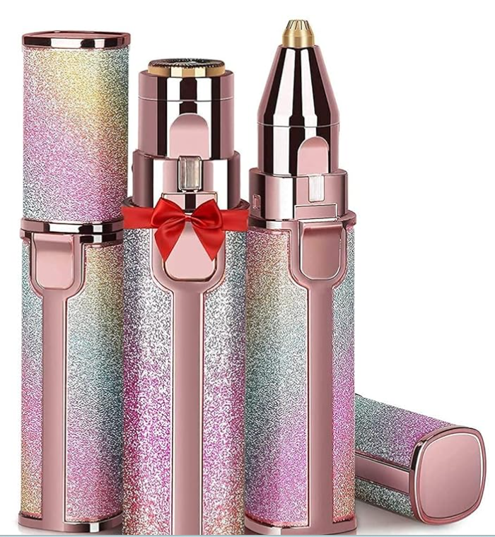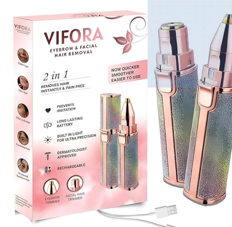 Say goodbye to unwanted facial hair with this 2-in-1 Portable Eyebrow Trimmer and Facial Epilator.