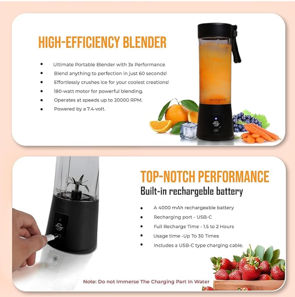 This powerful and compact USB blender lets you blend smoothies, shakes, and juices on-the-go.